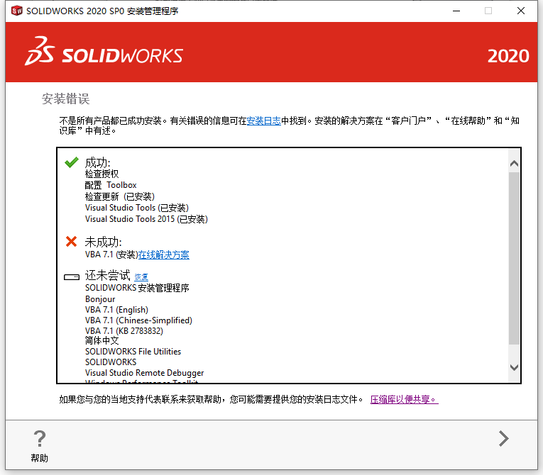 solidworks安装提示A newer version of this application is already installed, Installationstopped. 以及vba7.1安装未完成的解决方法