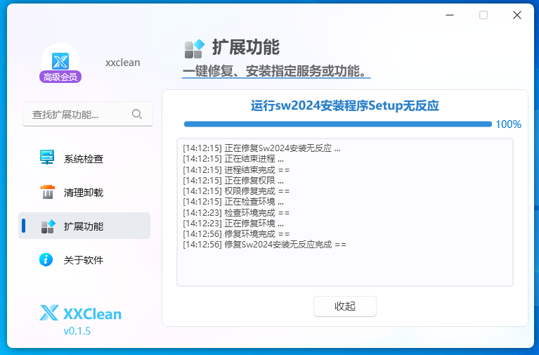 点击扩展功能,点击 运行sw2024安装程序无反应 右边的开始